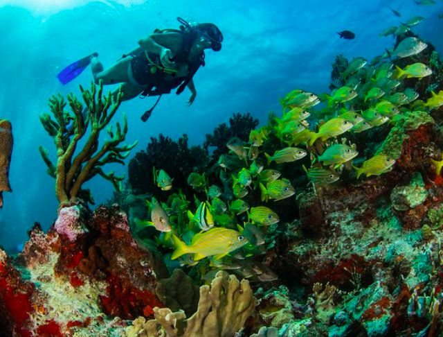 Fuera de la barrera arrecifal y en distancias no mayores a dos millas náuticas, existen diversos puntos para bucear dentro del Parque Marino: “Cuevones”, “La Bocana”, “El Túnel”, “Los Jardines”, “La Pared”, “El Puente”, también se cuenta con un arrecife artificial, el barco cañonero C-56 Juan Escutia donado y hundido por la Armada de México el 28 de octubre de 2000. El barco a una profundidad de 30 metros y expuesto a las corrientes marinas ha cumplido su propósito, ya que a tan sólo 4 años de su hundimiento, se encontraba cubierto casi por completo de corales, esponjas, gorgonias y una gama indescriptible de criaturas de todas formas y colores, imposibles de enumerar una por una.     En el poblado y en diversos hoteles del área costera existen tiendas de buceo y embarcaciones que ofrecen el tour.